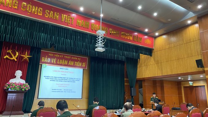 Hội đồng chấm luận án có các thành viên: Đại tá, GS.TS Nguyễn Hồng Lanh – Học viện KTQS, Chủ tịch Hội đồng; Đại tá, PGS.TS PGS.TS Nguyễn Ngọc Chương – Tổng cục CNQP, Phản biện 1; PGS.TS Lã Đức Việt – Viện Cơ học – Viện HLKH&CNVN, Phản biện 2; Đại tá, PGS.TS Bùi Ngọc Hồi – Viện KH&CNQS, Phản biện 3; Trung tá, PGS.TS Nguyễn Văn Dũng – Học viện KTQS, Thư ký; GS.TSKH Vũ Duy Quang – Đại học Bách khoa HN, Ủy viên; Đại tá, TS Trương Tư Hiếu – Học viện KTQS, Ủy viên.